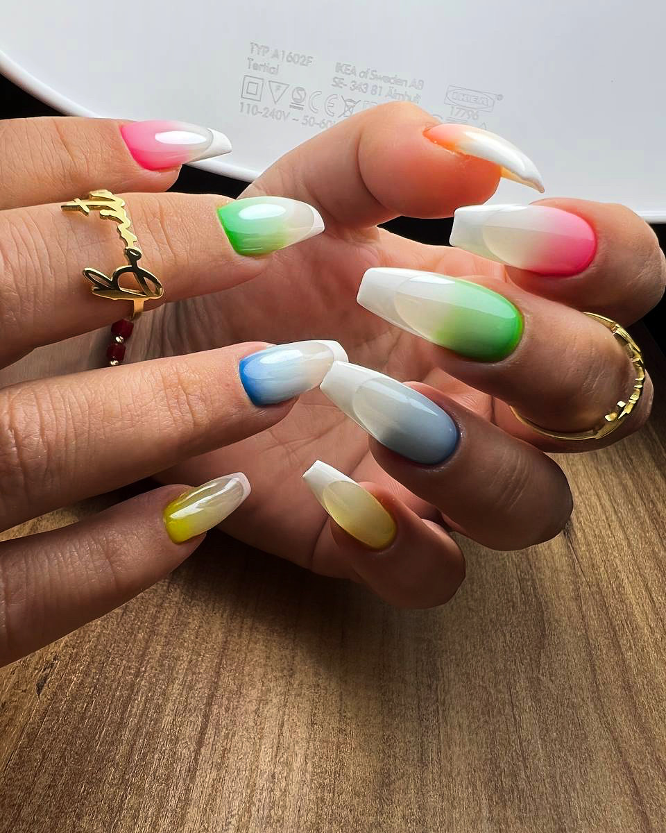 4- Kürleme ve bitirme: Tırnaklar UV ışık altında kurutulur. Tırnaklar kuruduktan sonra, doğal tırnaklarla eşleşecek şekilde şekillendirilir.